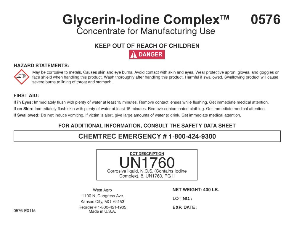 Glycerin-Iodine Complex by is a Other medication manufactured, distributed, or labeled by DeLaval, Inc, West Agro, Inc. Drug facts, warnings, and ingredients follow.