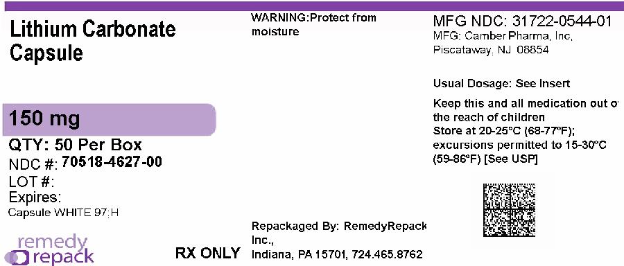 Active ingredient: lithium carbonate, USP Inactive ingredients: gelatin, sodium lauryl sulfate, talc, titanium dioxide and the imprinting ink contains black iron oxide E172 dye, butyl alcohol, dehydrated alcohol, isopropyl alcohol, potassium hydroxide, propylene glycol, shellac and strong ammonia solution. Medication Guide available at http://camberpharma.com/medication-guides |