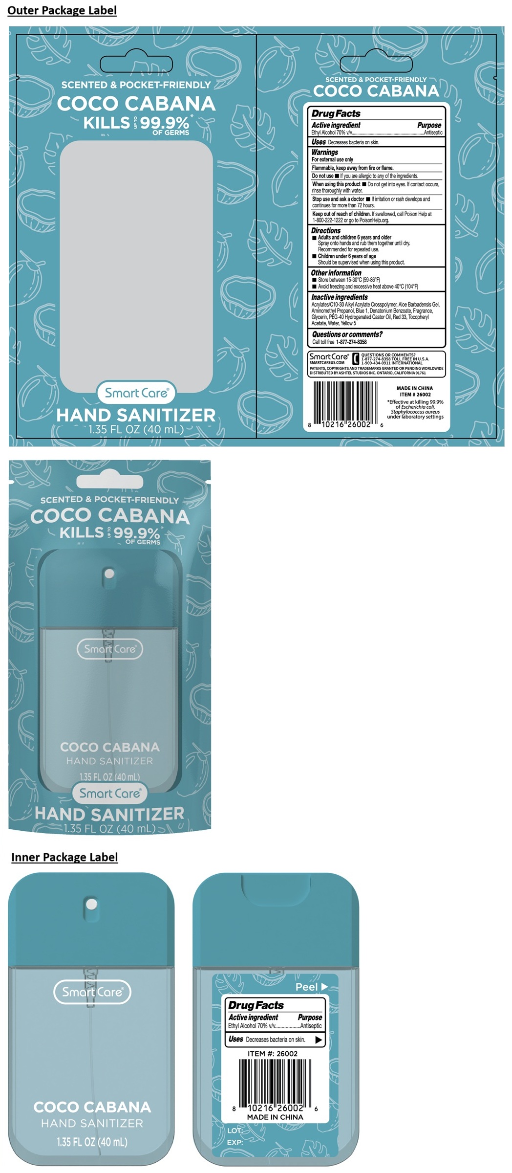 Smart Care COCO CABANA HAND SANITIZER by is a Otc medication manufactured, distributed, or labeled by Ashtel Studios, Inc.. Drug facts, warnings, and ingredients follow.