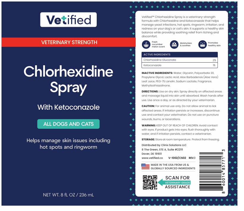 Vetified VETERINARY STRENGTH Chlorhexidine ALL DOGS AND CATS by is a Animal medication manufactured, distributed, or labeled by Clinix Solutions LLC. Drug facts, warnings, and ingredients follow.