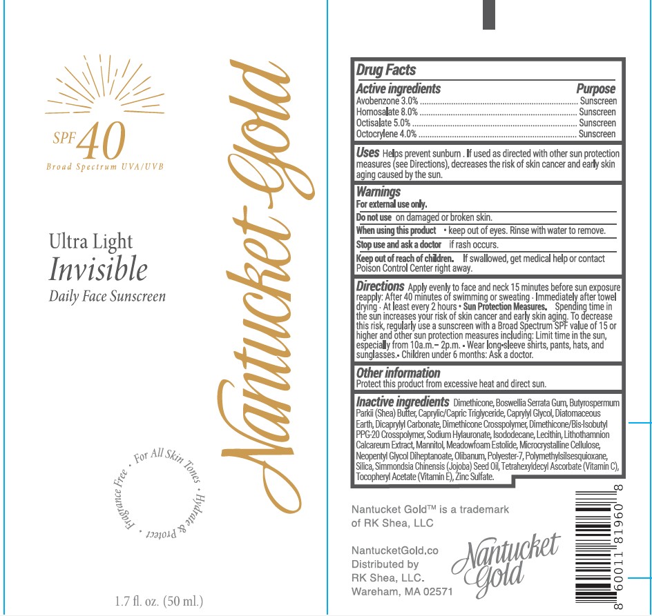 Ultra Light Invisible SPF 40 sunscreen by is a Otc medication manufactured, distributed, or labeled by RK Shea LLC, Inspec Solutions. Drug facts, warnings, and ingredients follow.
