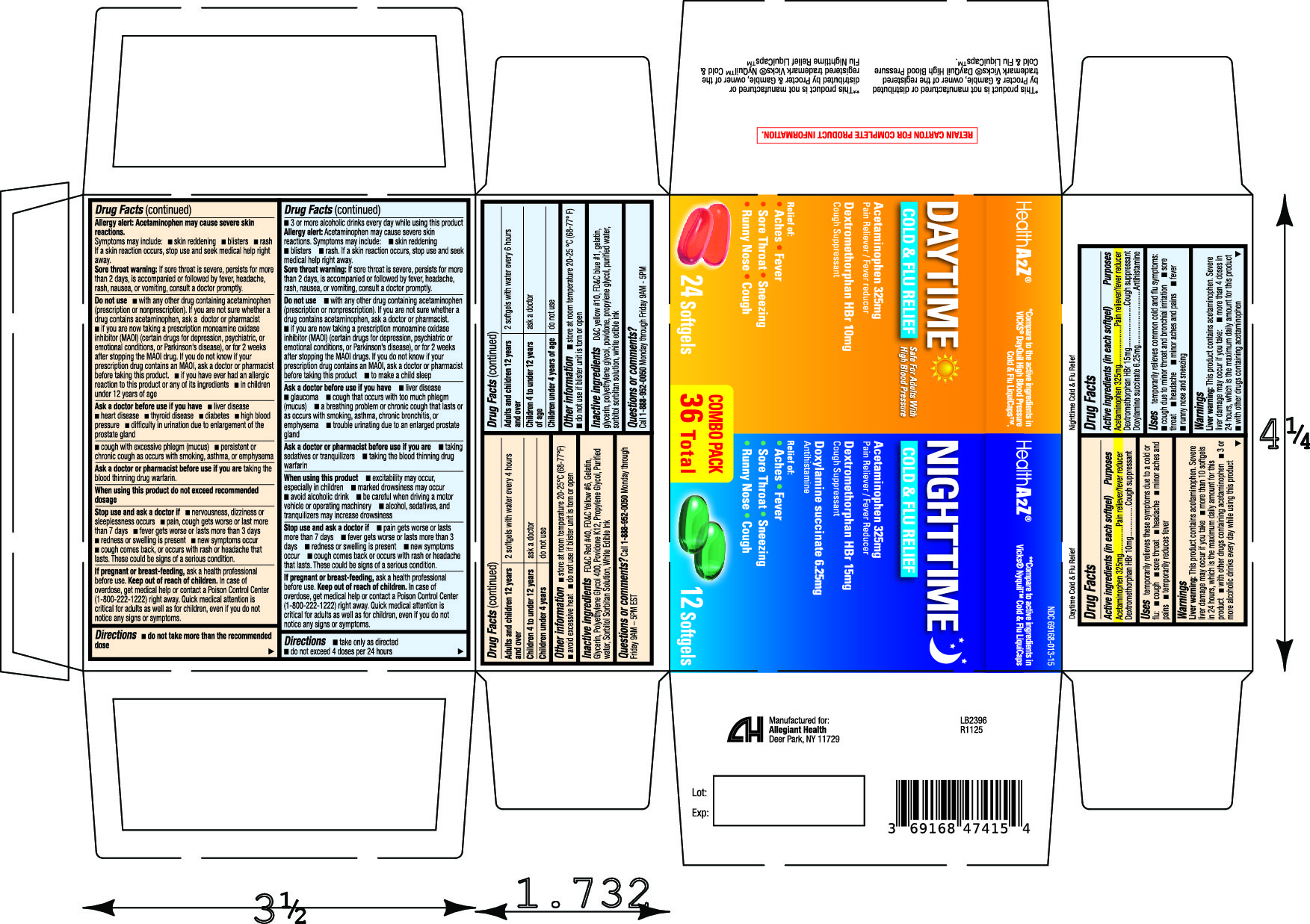 Daytime and Nighttime Cold and Flu Kit by is a Otc medication manufactured, distributed, or labeled by Allegiant Health. Drug facts, warnings, and ingredients follow.
