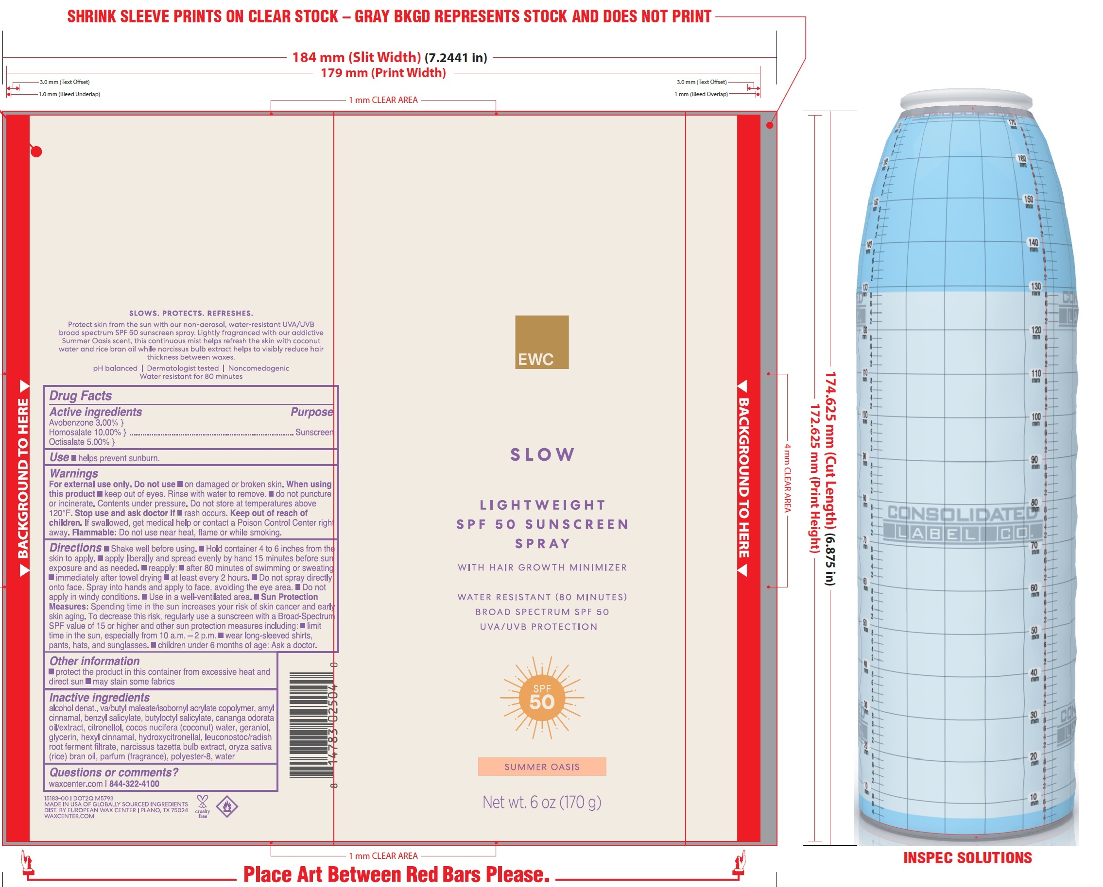 EWC Slow Lightweight Sunscreen SPF 50 by is a Otc medication manufactured, distributed, or labeled by EWC Ventures, LLC. Drug facts, warnings, and ingredients follow.