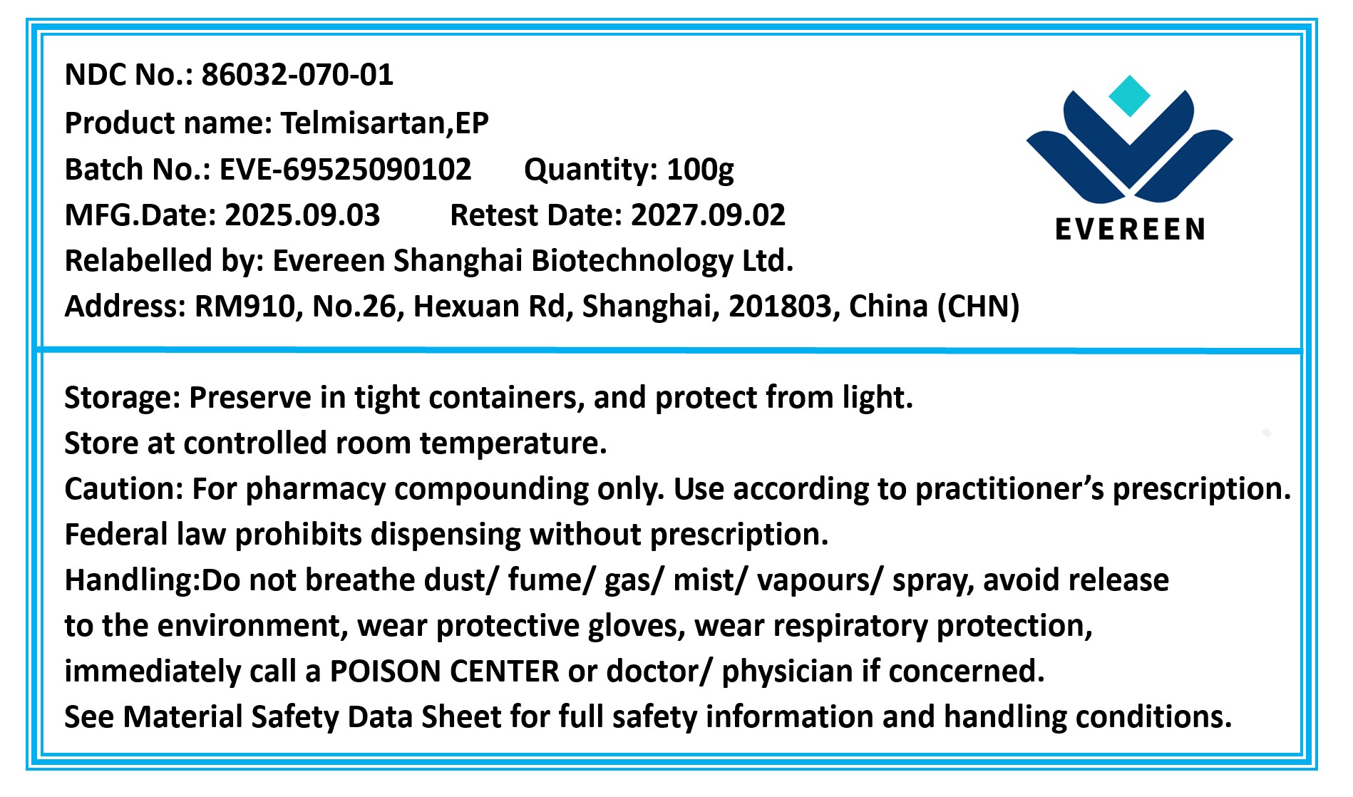 | Evereen Shanghai Biotechnology Ltd. | 711547777 | relabel | |