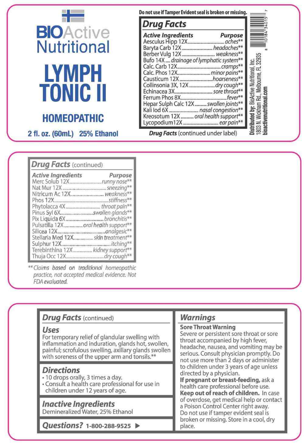 Lymph Tonic II by is a Homeopathic medication manufactured, distributed, or labeled by BioActive Nutritional, Inc., Apotheca Company. Drug facts, warnings, and ingredients follow.