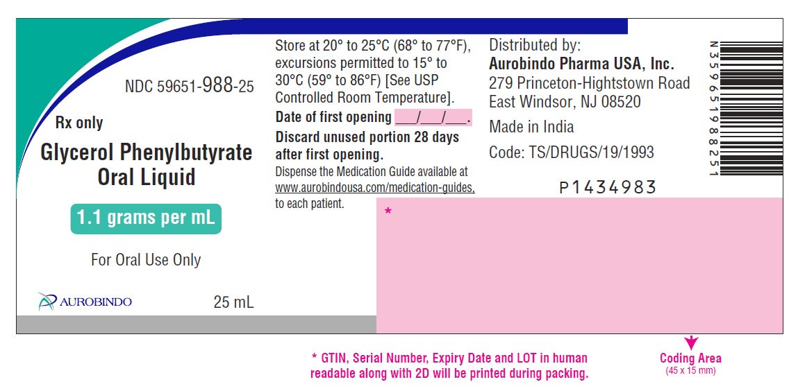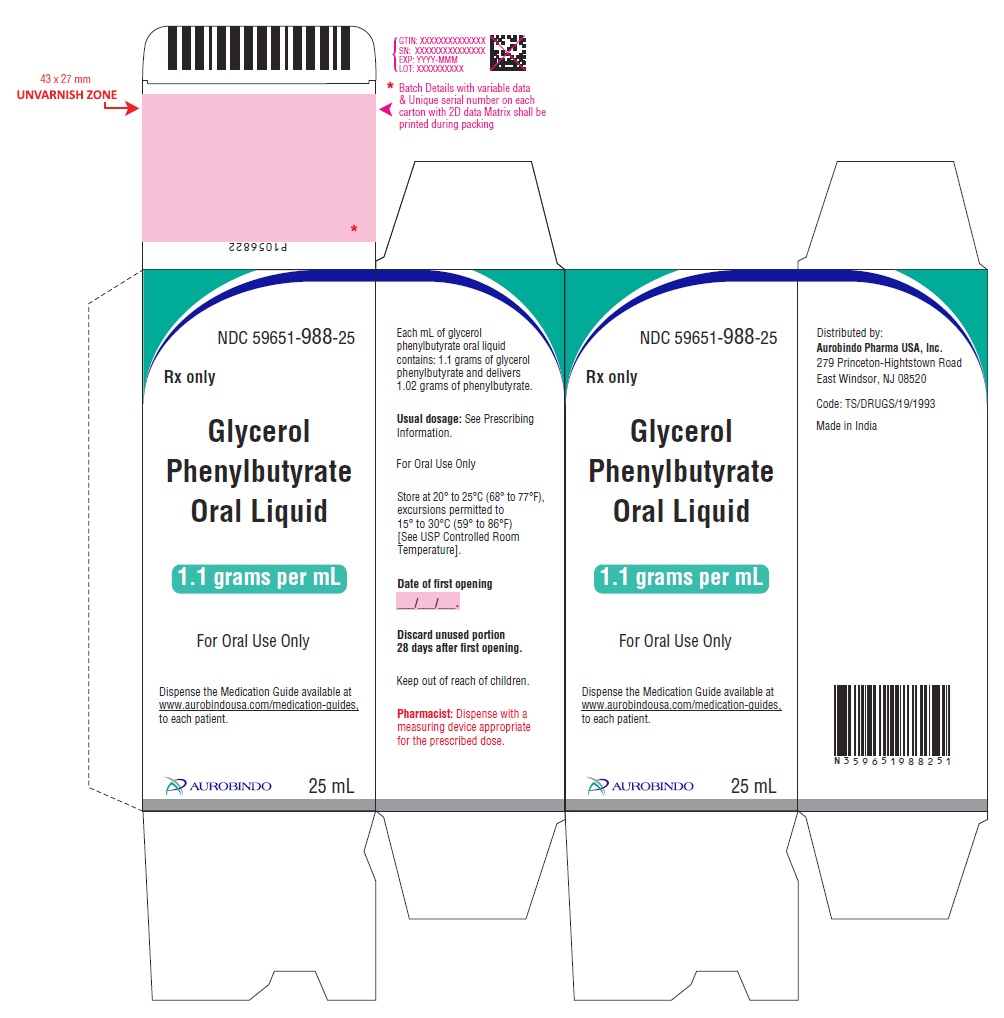 | What are the ingredients in glycerol phenylbutyrate oral liquid? Active ingredient: glycerol phenylbutyrate Distributed by: Aurobindo Pharma USA, Inc. 279 Princeton-Hightstown Road East Windsor, NJ 08520 Manufactured by: Aurobindo Pharma Limited Hyderabad-500 032, India For more information, call Aurobindo Pharma USA, Inc. at 1-866-850-2876. |