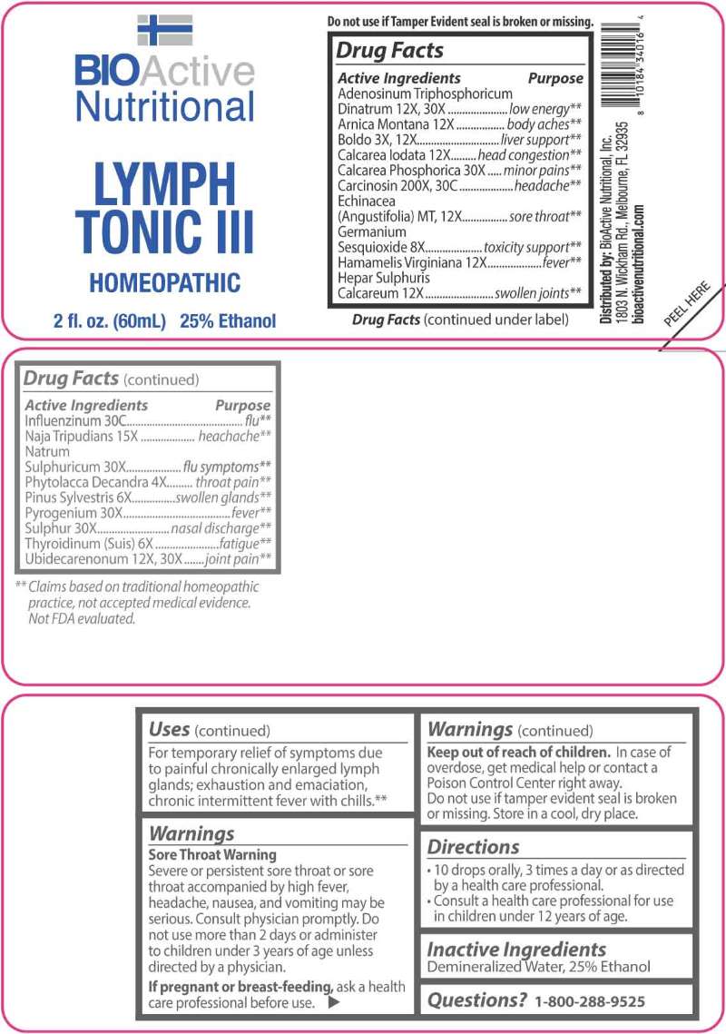Lymph Tonic III by is a Homeopathic medication manufactured, distributed, or labeled by BioActive Nutritional, Inc., Apotheca Company. Drug facts, warnings, and ingredients follow.