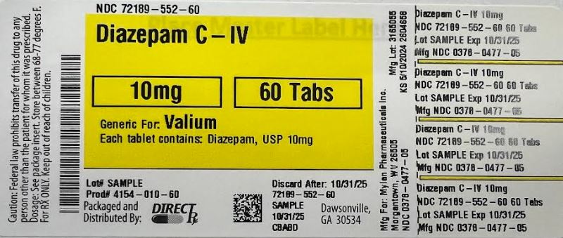 Diazepam by is a Prescription medication manufactured, distributed, or labeled by Direct_Rx. Drug facts, warnings, and ingredients follow.