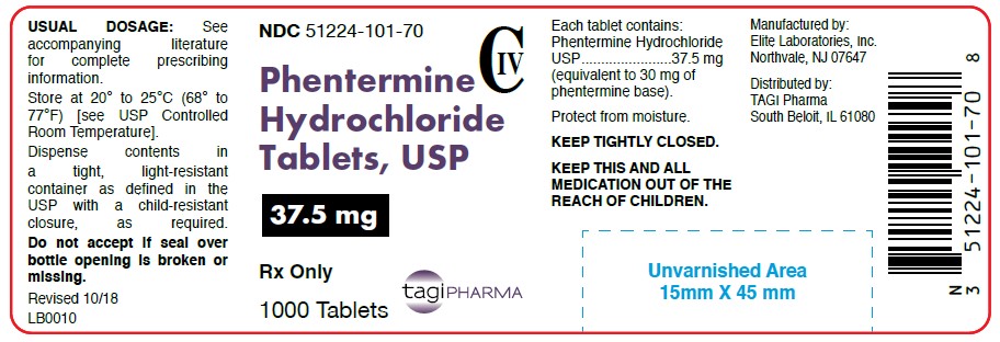Phentermine hydrochloride, an anorectic agent for oral administration, is available as a tablet containing 37.5 mg of phentermine hydrochloride (equivalent to 30 mg of phentermine base).
