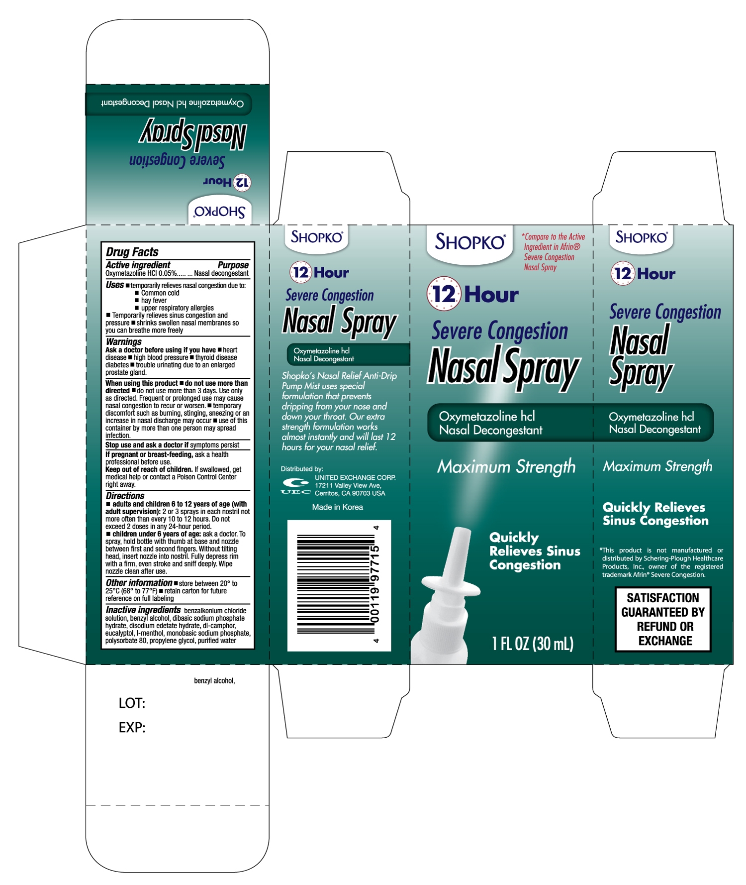 SHOPKO SEVERE CONGESTION NASAL by is a Otc medication manufactured, distributed, or labeled by UNITED EXCHANGE CORP.. Drug facts, warnings, and ingredients follow.