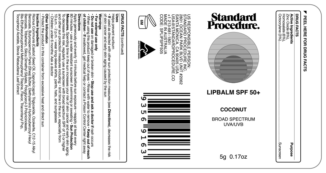 Standard Procedure Lip Balm SPF 50 by is a Otc medication manufactured, distributed, or labeled by Standard Procedure Inc. Drug facts, warnings, and ingredients follow.