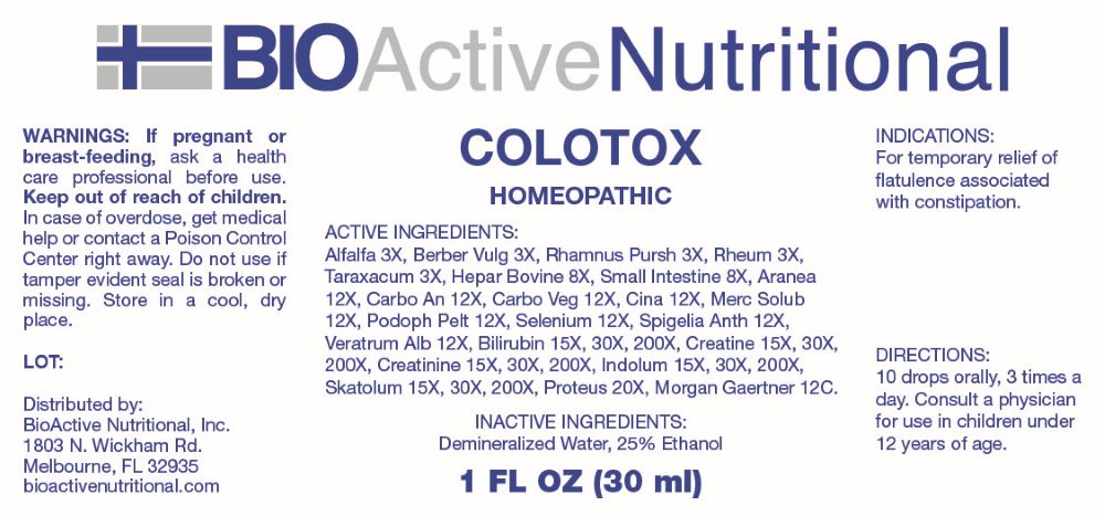 Colotox by is a Homeopathic medication manufactured, distributed, or labeled by BioActive Nutritional, Inc., Apotheca Company. Drug facts, warnings, and ingredients follow.