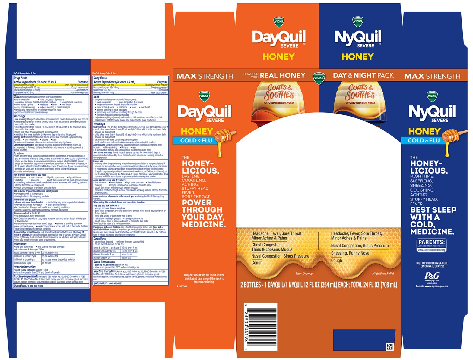 VICKS DayQuil NyQuil SEVERE HONEY by is a Otc medication manufactured, distributed, or labeled by The Procter & Gamble Manufacturing Company. Drug facts, warnings, and ingredients follow.