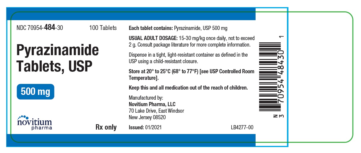 Pyrazinamide Tablets, USP 500 mg are round, white, scored tablets, debossed "N" above the score and "484" below the score.