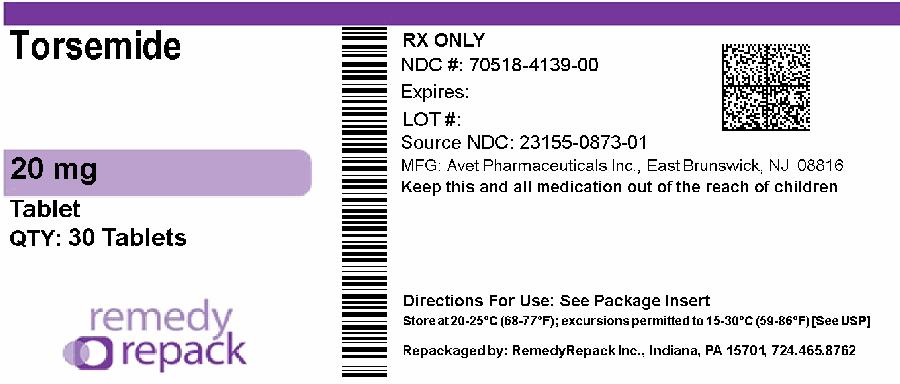 Torsemide by is a Prescription medication manufactured, distributed, or labeled by REMEDYREPACK INC.. Drug facts, warnings, and ingredients follow.