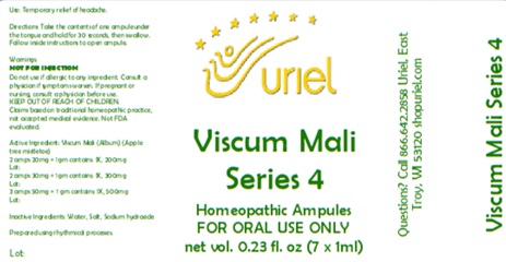Viscum Mali Series 4 by is a Homeopathic medication manufactured, distributed, or labeled by Uriel Pharmacy Inc.. Drug facts, warnings, and ingredients follow.