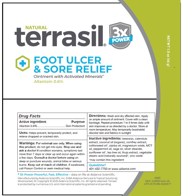 terrasil Foot Ulcer and Sore Relief by is a Otc medication manufactured, distributed, or labeled by Aidance Scientific, Inc., DBA Aidance Skincare & Topical Solutions. Drug facts, warnings, and ingredients follow.
