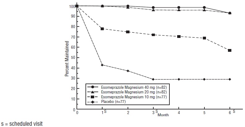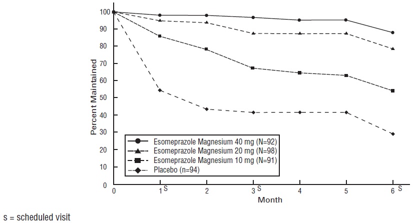 Esomeprazole magnesium delayed-release capsules are indicated for the maintenance of healing of EE in adults. Controlled studies do not extend beyond 6 months.