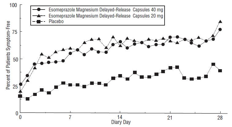 In three European symptomatic GERD trials, esomeprazole magnesium delayed-release capsules 20 mg and 40 mg and omeprazole 20 mg were evaluated. No significant treatment related differences were seen.