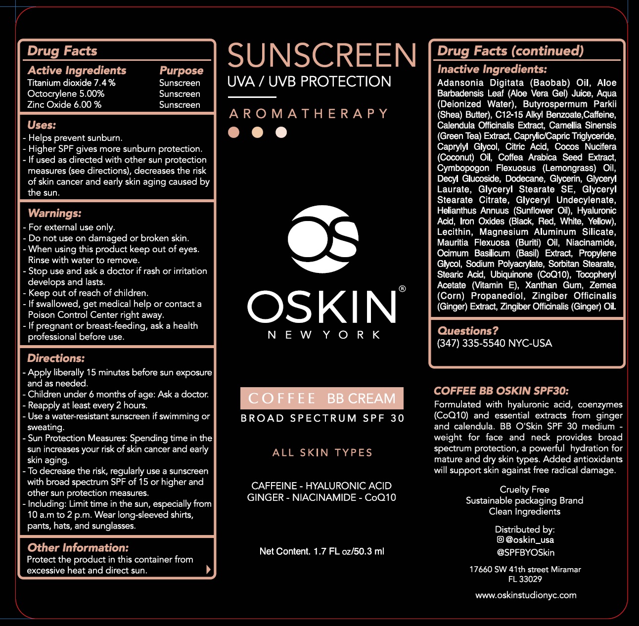 OSKIN New York Coffee BB Cream SPF 30 by is a Otc medication manufactured, distributed, or labeled by O'Skin Studio NY, Pure Source, LLC. Drug facts, warnings, and ingredients follow.