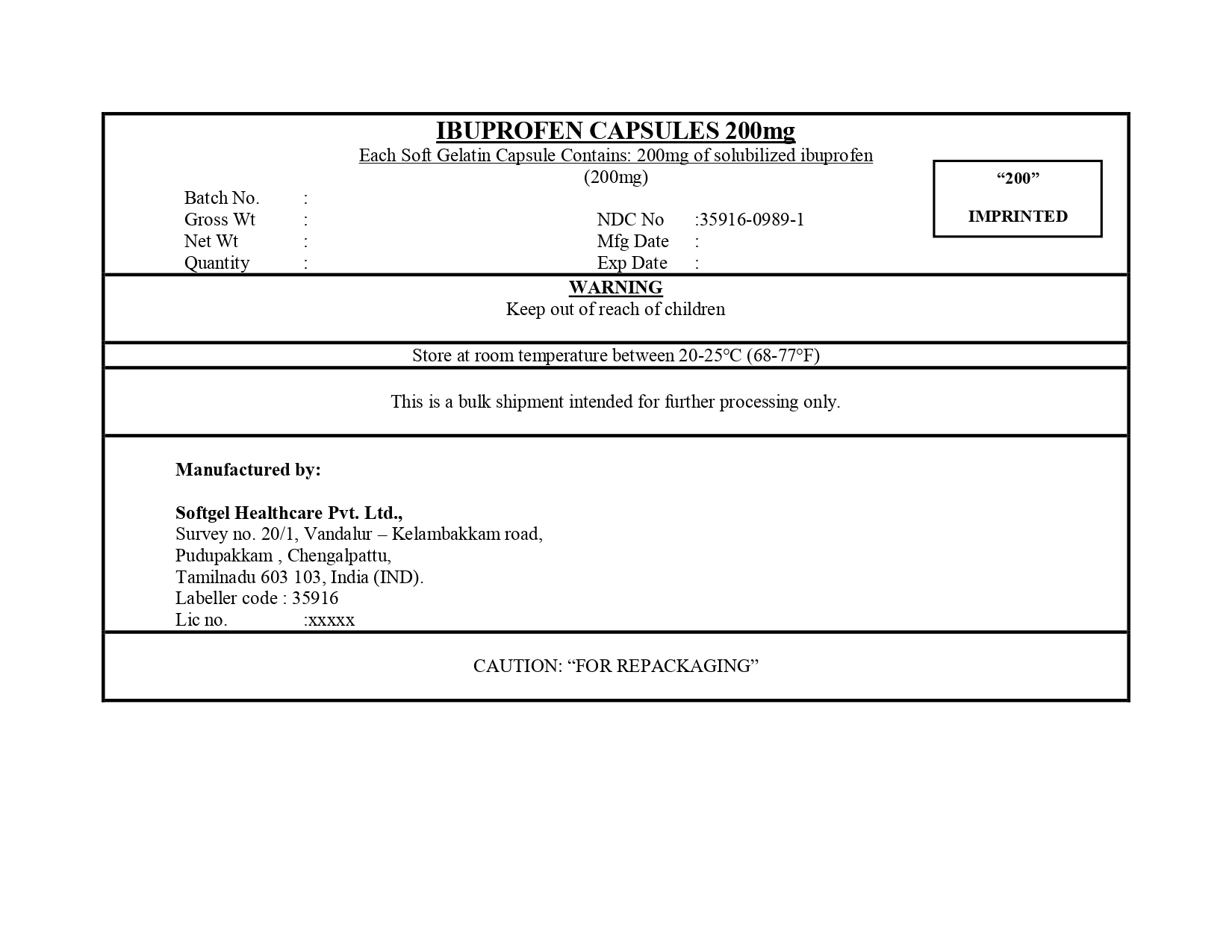 Ibuprofen by is a Otc medication manufactured, distributed, or labeled by Softgel Healthcare Private Limited. Drug facts, warnings, and ingredients follow.