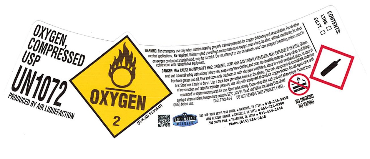 OXYGEN by is a Prescription medication manufactured, distributed, or labeled by Volunteer Welding Supply Inc, VOLUNTEER WELDING SUPPLY, INC.. Drug facts, warnings, and ingredients follow.