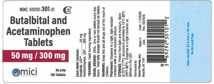 Butalbital and Acetaminophen tablets, 50 mg/300 mg: White to off-white, round bi-convex tablets, debossed “A32” on one side and plain on the other side, in bottles of 100 tablets with child-resistance closure (NDC: 69292-301-01).