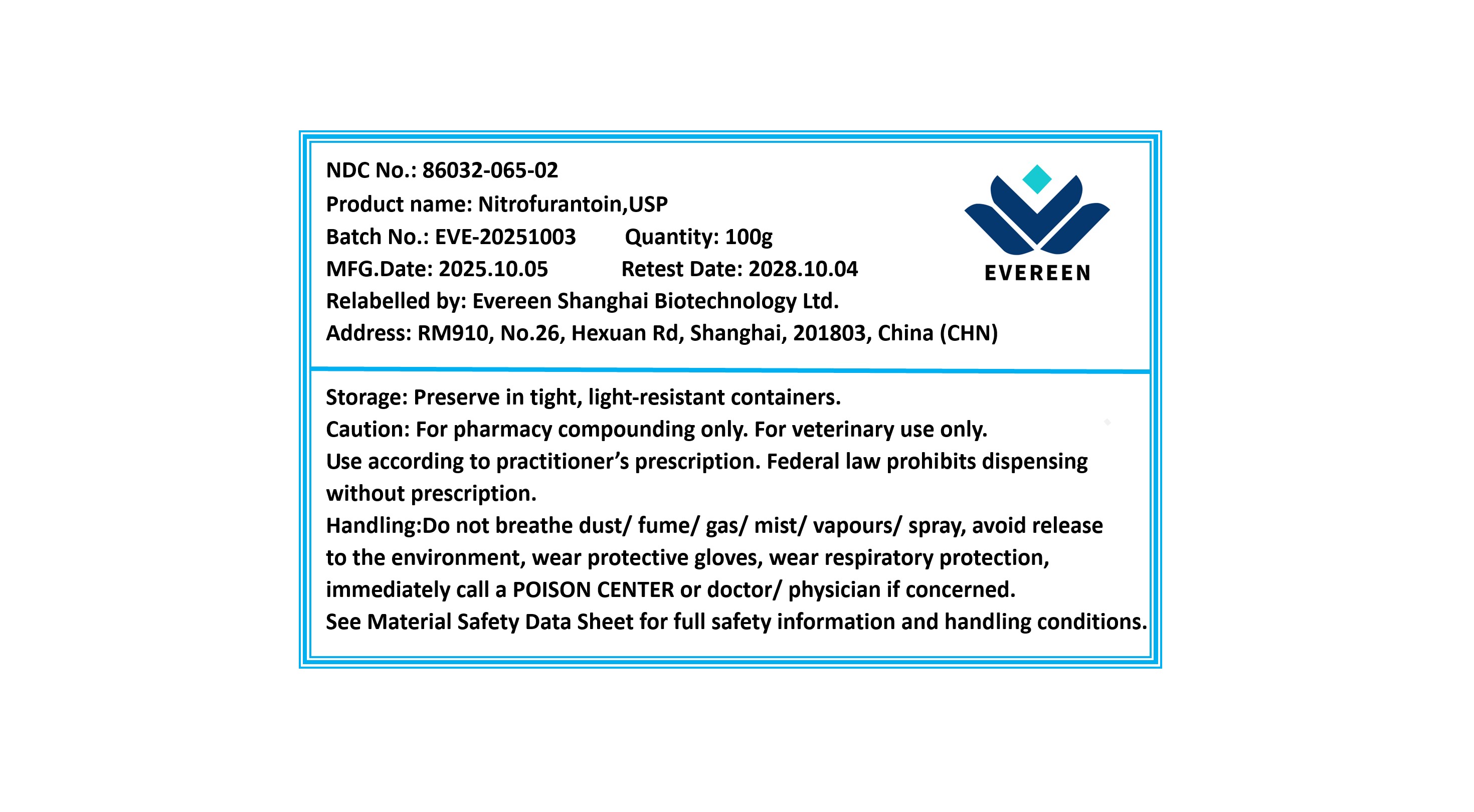 | Evereen Shanghai Biotechnology Ltd. | 711547777 | relabel | |