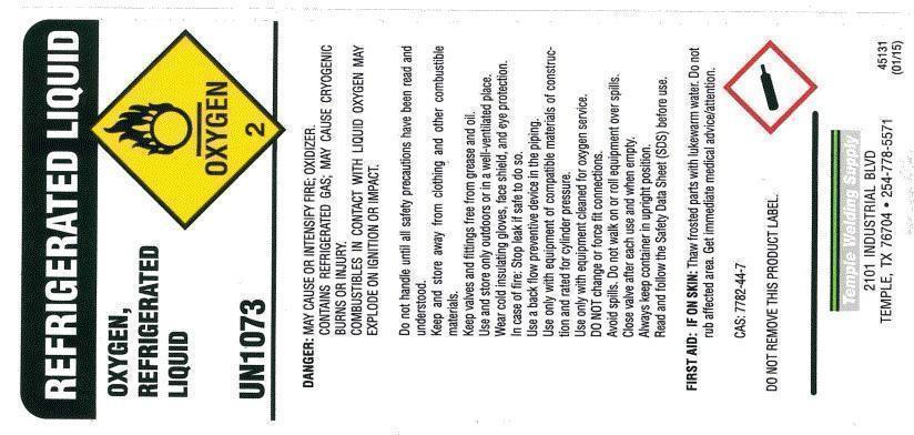 Danger: MAY CAUSE OR INTENSIFY FIRE; OXIDIZER. CONTAINS REFRIGERATED GAS; MAY CAUSE CRYOGENIC BURNS OR INJURY. COMBUSTIBLES IN CONTACT WITH LIQUID OXYGEN MAY EXPLODE ON IGNITION OR IMPACT. Do not handle until all safety precautions have been read and understood. Keep and store away from clothing and other combustible materials. Keep valves and fittings free from grease and oil. Use and store only outdoors or in a well-ventilated place. Wear cold insulating gloves, face shield, and eye protection. In case of fire: Stop leak if safe to do so. Use a back flow preventive device in the piping. Use only with equipment of compatible materials of construction and rated for cylinder pressure. Use only with equipment cleaned for oxygen service. DO NOT change or force fit connections. Avoid spills. Do not walk on or roll equipment over spills. Close valve after each use and when empty. Always keep container in upright position. Read and follow the Safety Data Sheet (SDS) before use.