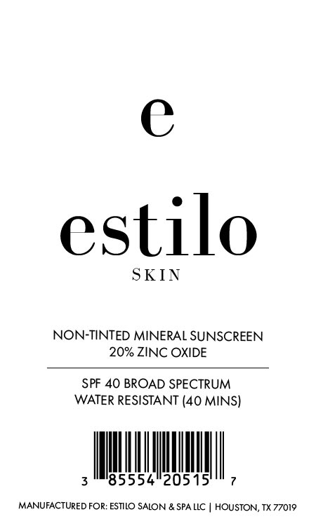 Non Tinted Mineral Sunscreen 20Percent Zinc Oxide by is a Otc medication manufactured, distributed, or labeled by ESTILO SALON & SPA LLC, Custom Analytics LLC, Fragrance Manufacturing INC, Fallien Cosmeceuticals Ltd.. Drug facts, warnings, and ingredients follow.