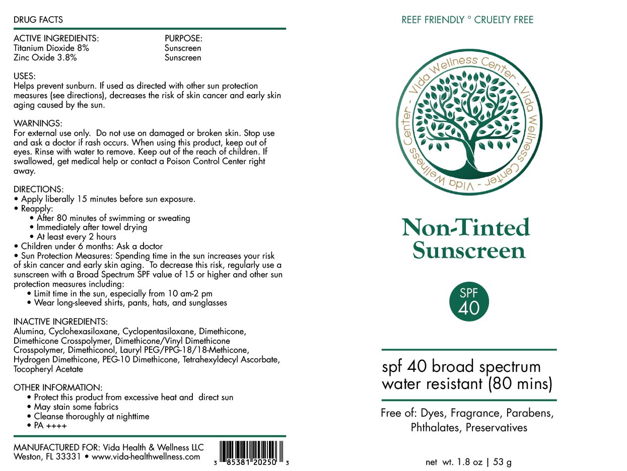 Non Tinted Sunscreen by is a Otc medication manufactured, distributed, or labeled by VIDA HEALTH & WELLNESS LLC, Custom Analytics LLC, Fragrance Manufacturing INC, Fallien Cosmeceuticals Ltd.. Drug facts, warnings, and ingredients follow.