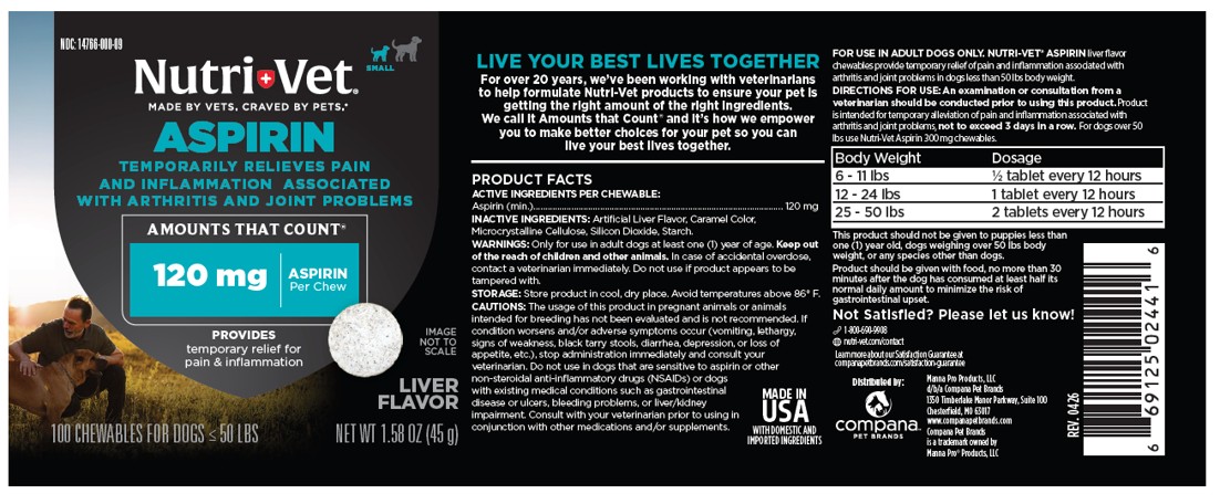 An examination or consultation from a veterinarian should be conducted prior to using this product. Product is intended for temporary alleviation of pain and inflammation associated with arthritis and joint problems, not to exceed 3 days in a row. For dogs over 50 lbs use Nutri-Vet Aspirin 300 mg chewables.