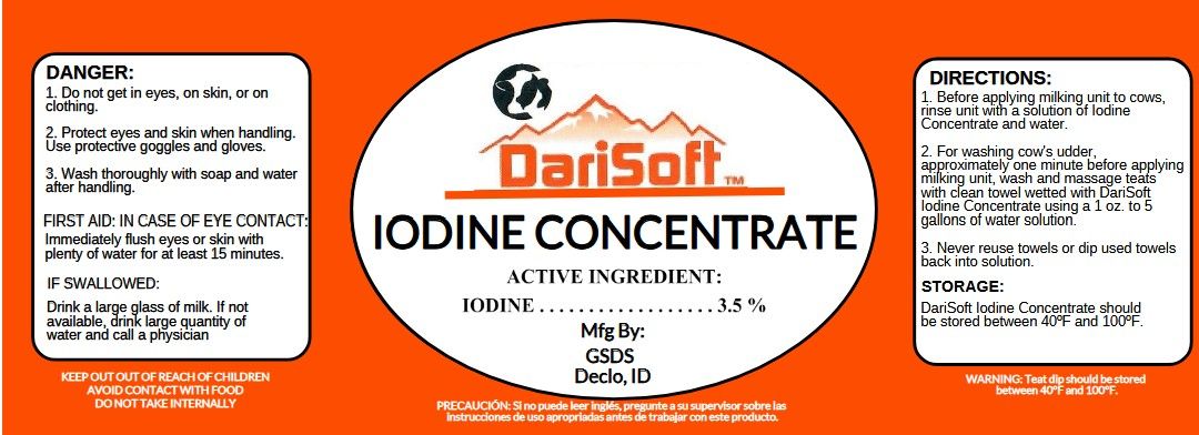 DariSoft Iodine Concentrate by is a Animal medication manufactured, distributed, or labeled by Gem State Dairy Supply. Drug facts, warnings, and ingredients follow.