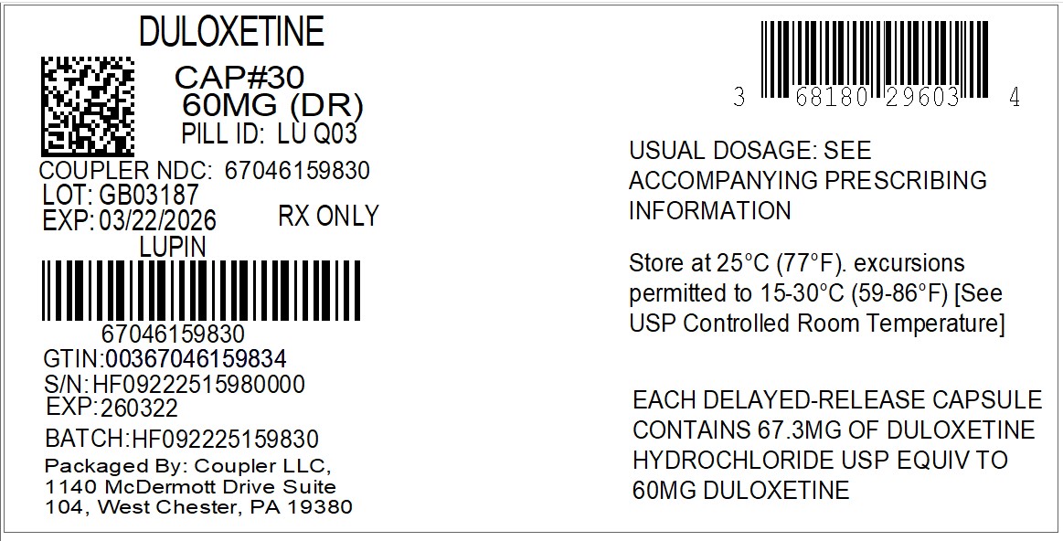 Duloxetine by is a Prescription medication manufactured, distributed, or labeled by Coupler LLC, LUPIN LIMITED. Drug facts, warnings, and ingredients follow.