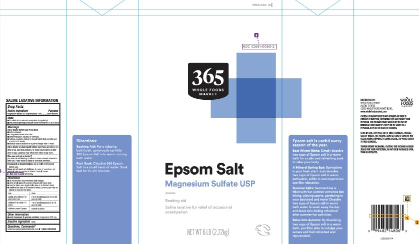 365 Whole Foods Market Epsom Salt by is a Otc medication manufactured, distributed, or labeled by Whole Foods Market, Inc., Consumer Product Partners, LLC. Drug facts, warnings, and ingredients follow.