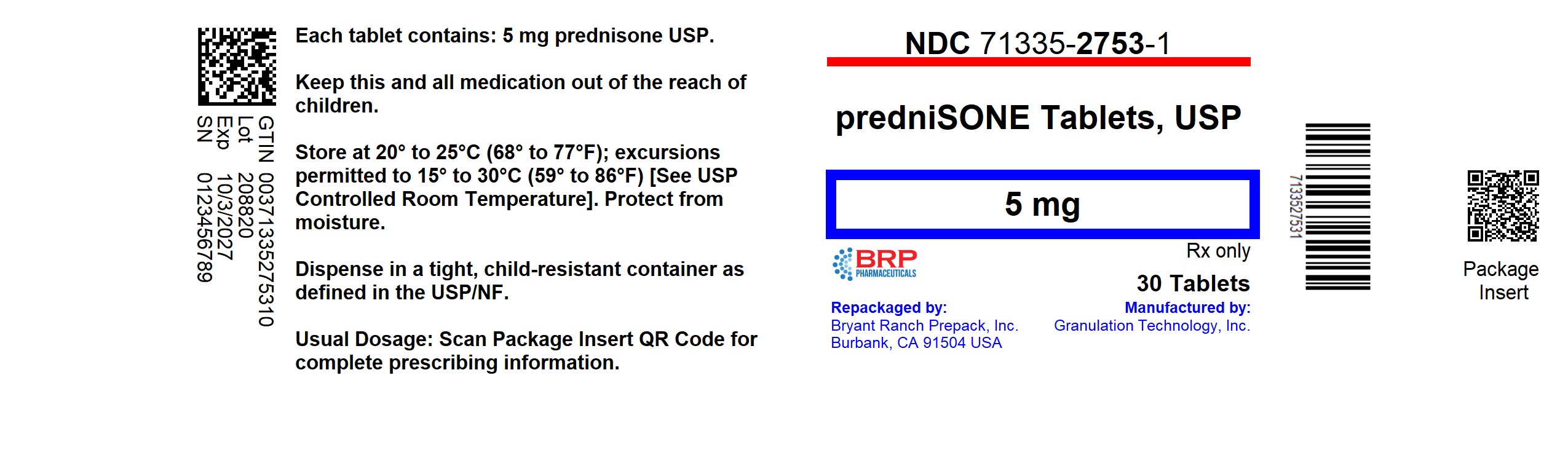 | Bryant Ranch Prepack | 171714327 | REPACK(71335-2753) , RELABEL(71335-2753) | |