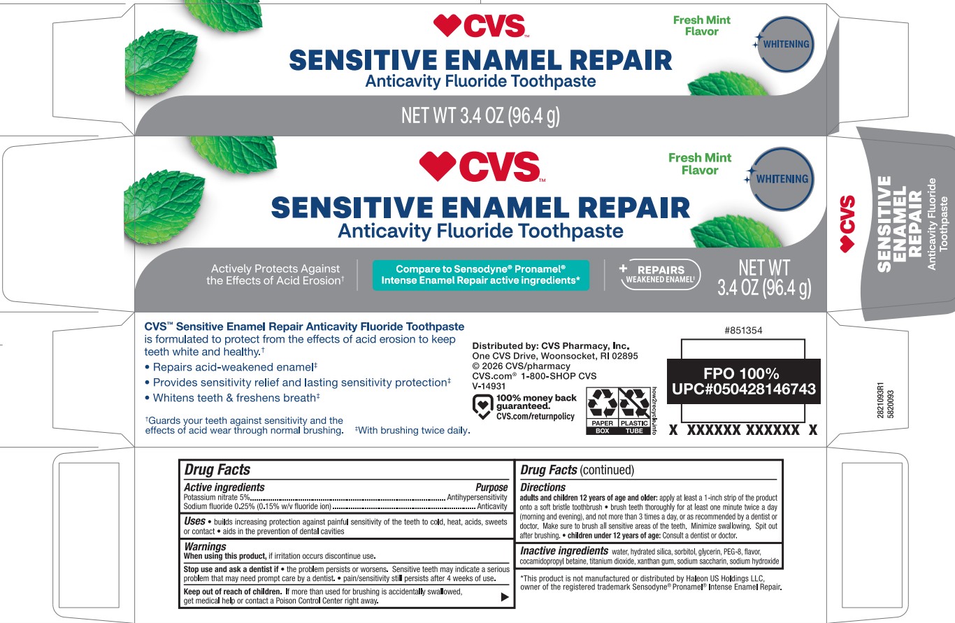 CVS Health Sensitive Enamel Repair by is a Otc medication manufactured, distributed, or labeled by CVS, 1000120219. Drug facts, warnings, and ingredients follow.