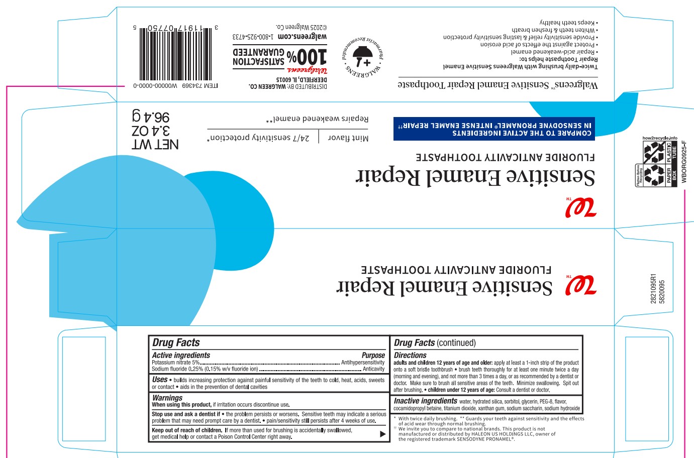 Walgreens Sensitive Enamel Repair by is a Otc medication manufactured, distributed, or labeled by Walgreens, 1000120219. Drug facts, warnings, and ingredients follow.