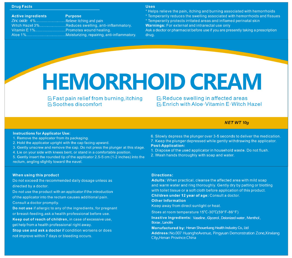 Hemorrhoid Cream by is a Otc medication manufactured, distributed, or labeled by Henan Shouerkang Health Industry Co., Ltd. Drug facts, warnings, and ingredients follow.