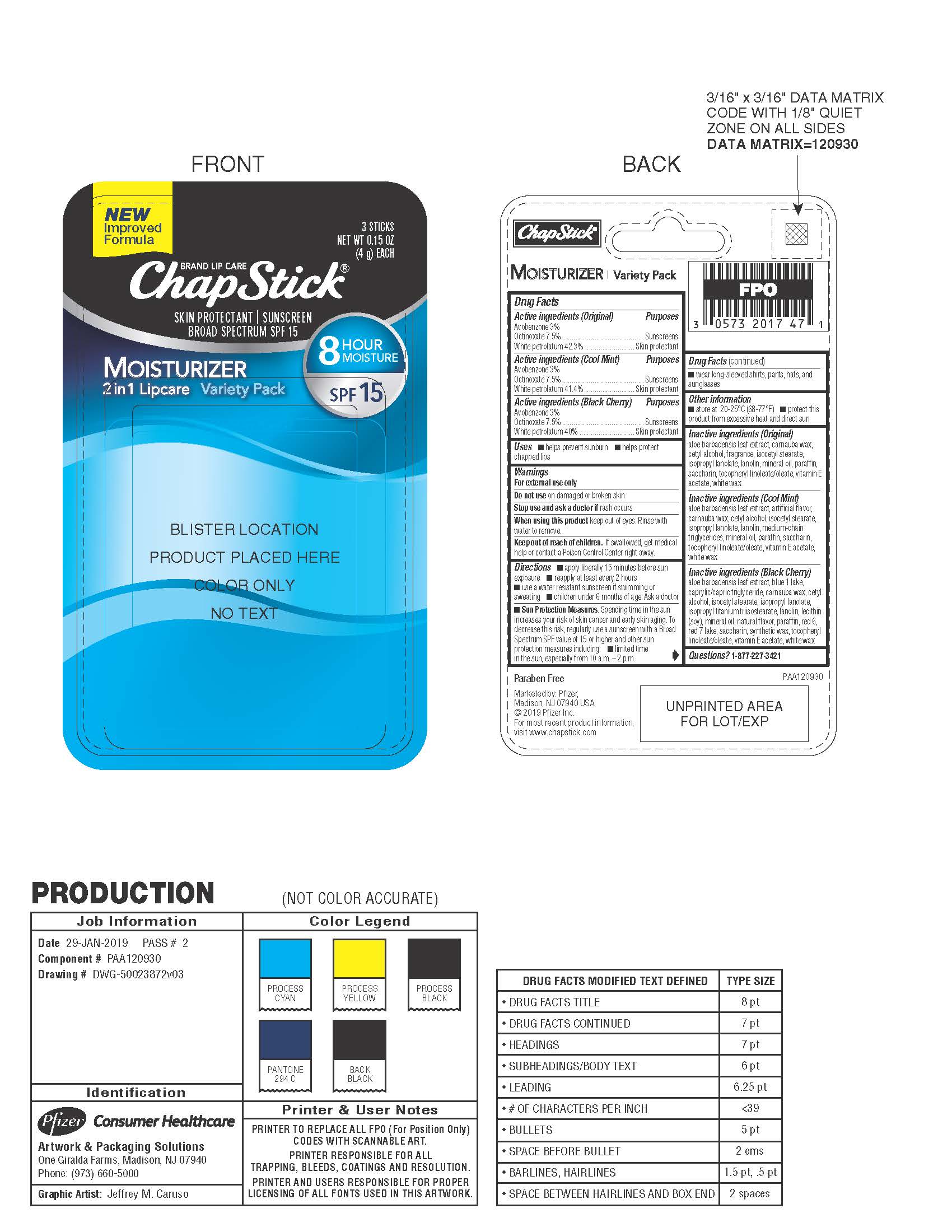 ChapStick Moisturizer Black Cherry SPF 15 by is a Otc medication manufactured, distributed, or labeled by Suave Brands Co., LLC, Fareva Richmond Inc. Drug facts, warnings, and ingredients follow.