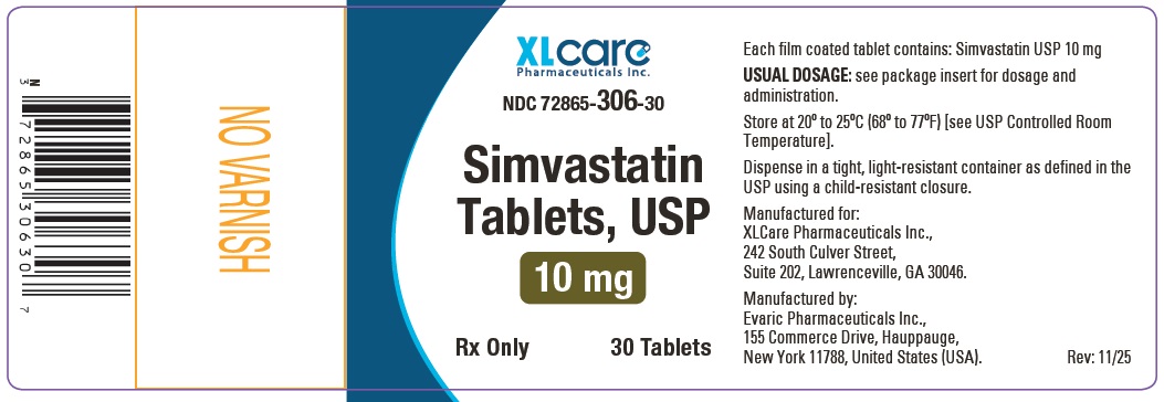What are the ingredients in simvastatin tablets? Active ingredient:simvastatin. Inactive ingredients: ascorbic acid, butylated hydroxyanisole, citric acid monohydrate, hydroxypropyl cellulose, hypromellose, iron oxide yellow, isopropyl alcohol, lactose monohydrate, magnesium stearate, microcrystalline cellulose, pregelatinized starch, talc and titanium dioxide. Additionally the 10 mg, 20 mg, 40 mg and 80 mg strengths contain: iron oxide red. The botanical source for pregelatinized starch is corn starch. Manufactured for: XLCare Pharmaceuticals, Inc. 242 South Culver Street, Suite 202, Lawrenceville, GA 30046. Manufactured by: Evaric Pharmaceuticals Inc. 155 Commerce Drive, Hauppauge, New York 11788, United States (USA). For more information, call at 1-866-495-1995. |