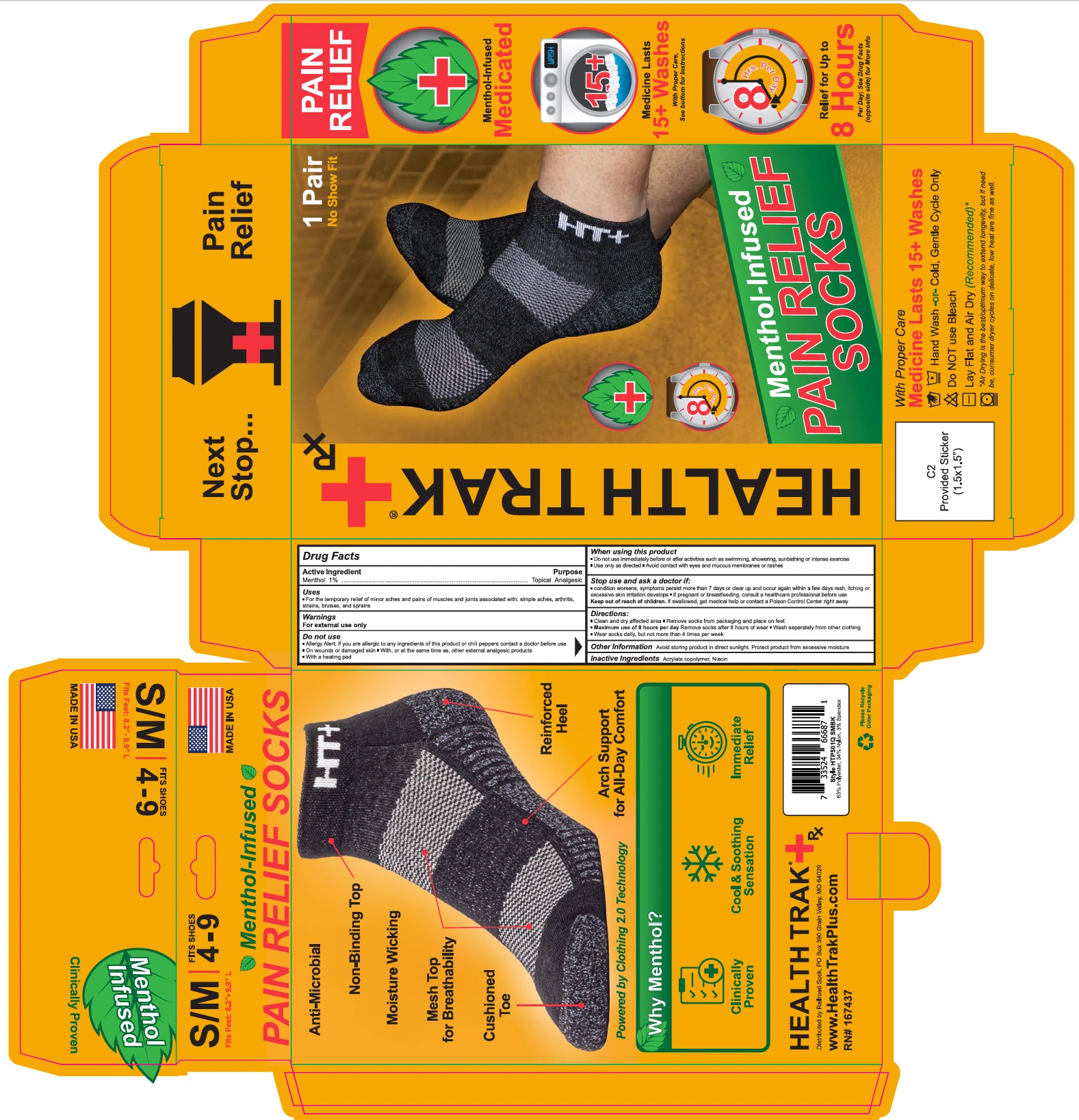 Health Trak Plus Menthol-Infused Pain Relief Socks by is a Otc medication manufactured, distributed, or labeled by Railroad Sock LLC. Drug facts, warnings, and ingredients follow.