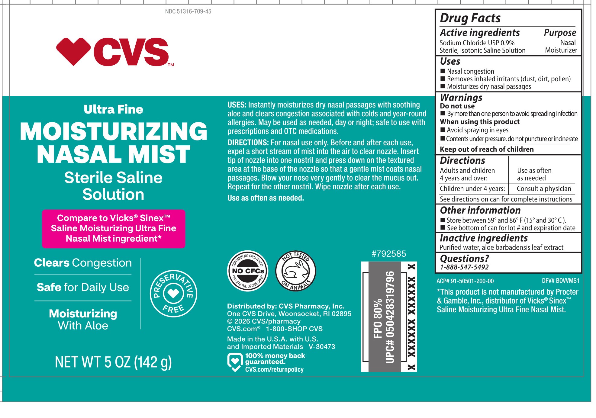 CVS ULTRA FINE MOISTURIZING SALINE MIST by is a Otc medication manufactured, distributed, or labeled by CVS. Drug facts, warnings, and ingredients follow.