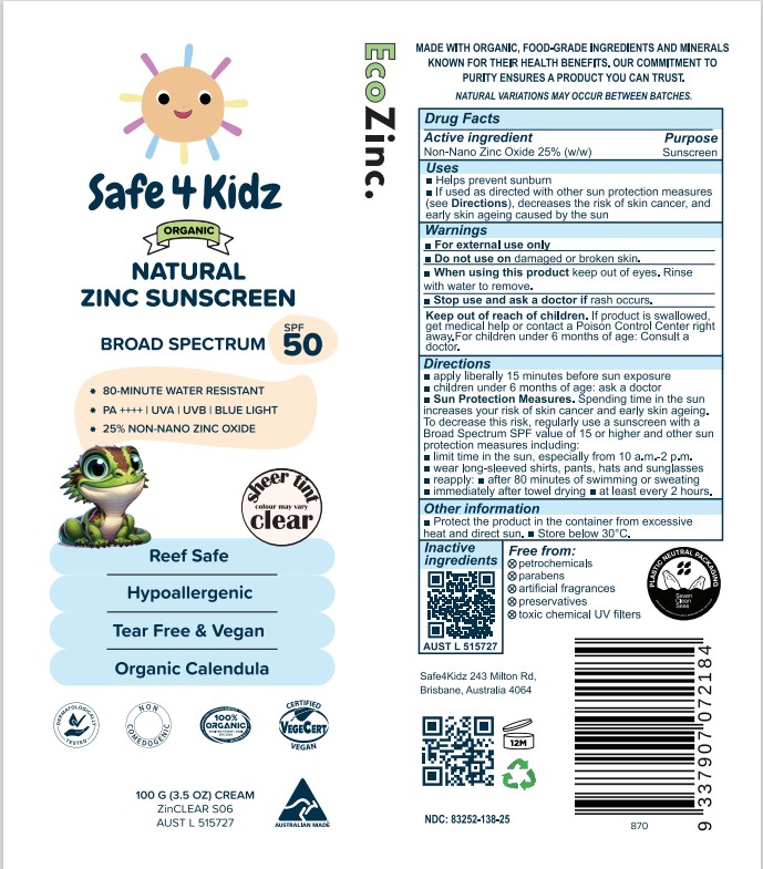 Safe4Kidz Natural Mineral Sunscreen SPF50 by is a Otc medication manufactured, distributed, or labeled by VEGANIC SKN LIMITED. Drug facts, warnings, and ingredients follow.