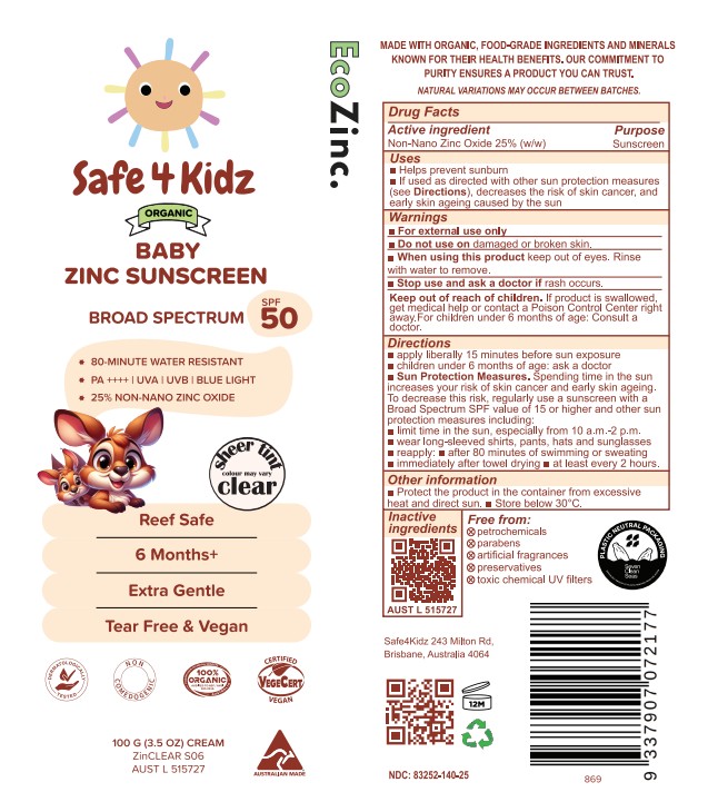 Safe4Kidz Baby Zinc Sunscreen SPF50 by is a Otc medication manufactured, distributed, or labeled by VEGANIC SKN LIMITED. Drug facts, warnings, and ingredients follow.