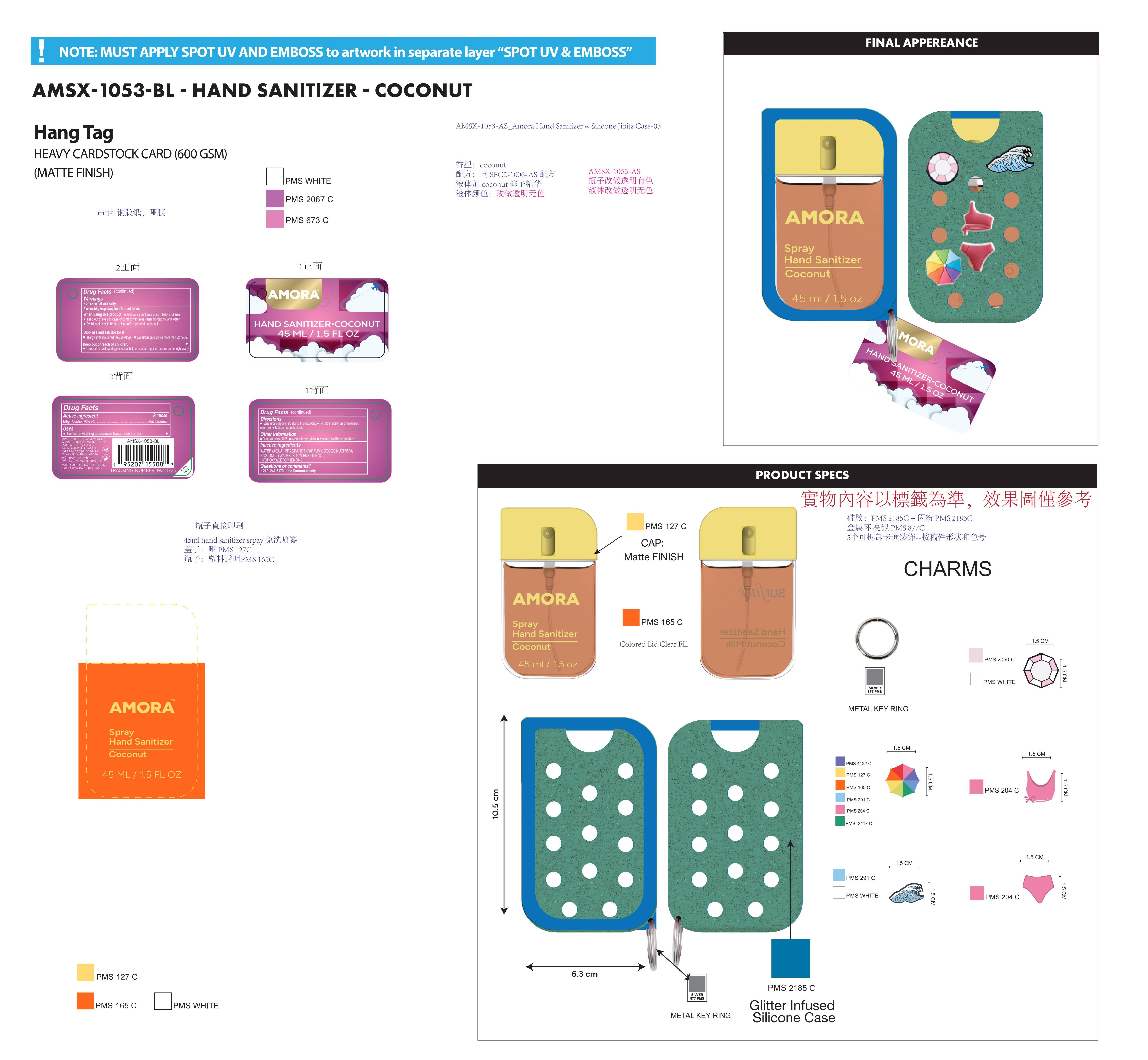 AMORA Spray. Hand Sanitizer coconut by is a Otc medication manufactured, distributed, or labeled by Longway Technology(Guangzhou) Co., Ltd.. Drug facts, warnings, and ingredients follow.