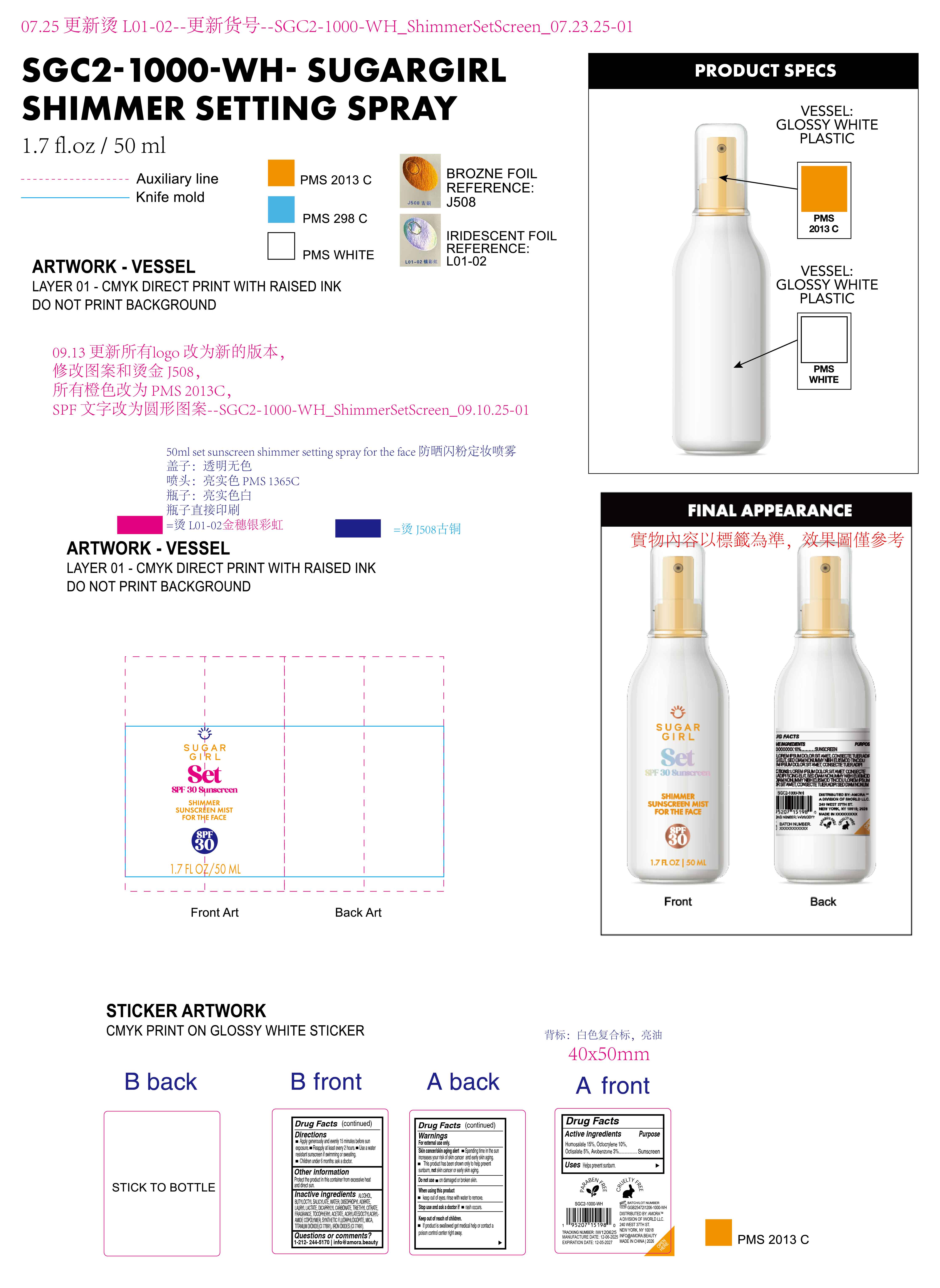 Sugargirl Set SPF 30 sunscreen shimmer sunscreen mist for the face by is a Otc medication manufactured, distributed, or labeled by Longway Technology(Guangzhou)Co.,Ltd.. Drug facts, warnings, and ingredients follow.