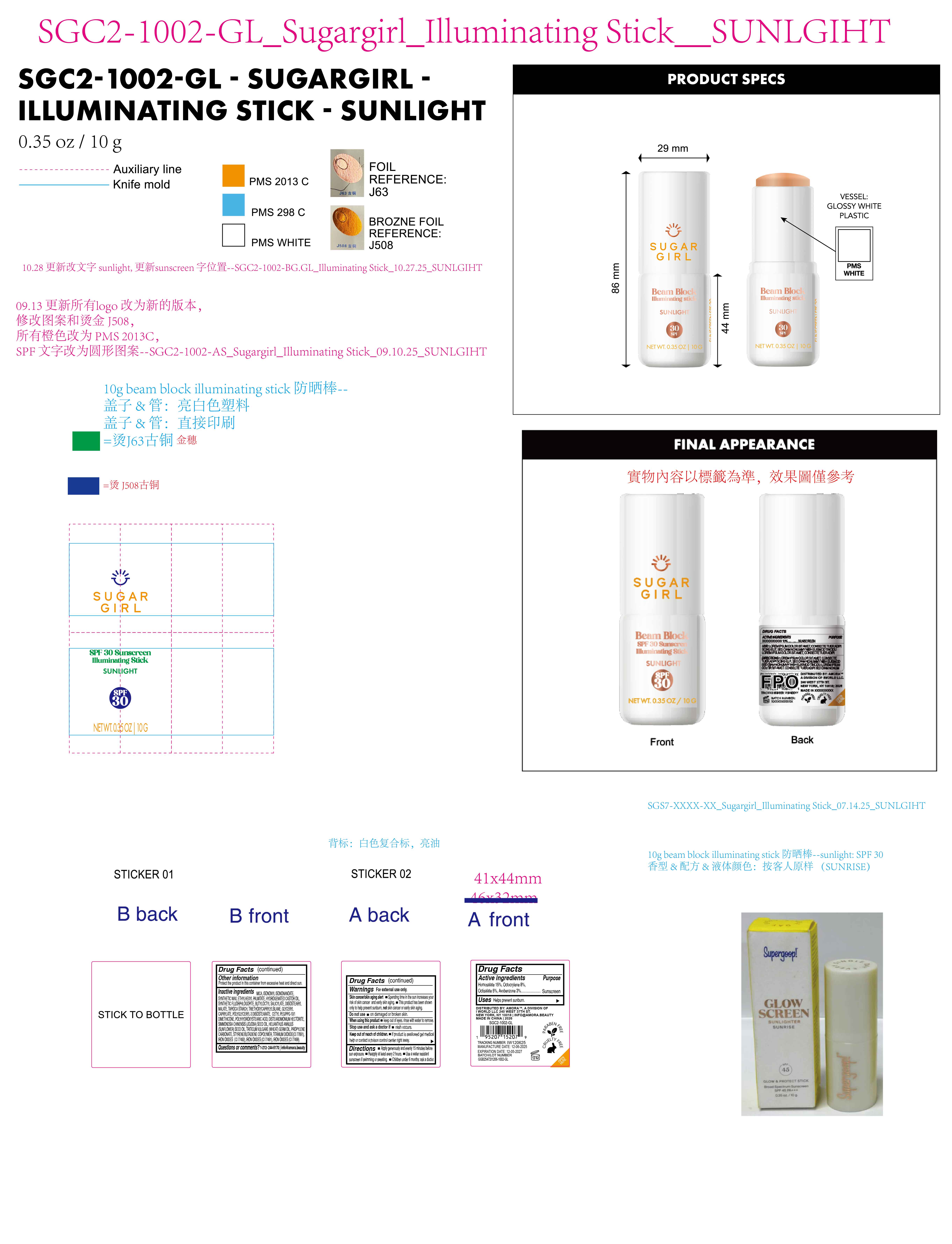 | SUGARGIRL SPF 30 SUNSCREEN ILLUMINATING STICK SUNLIGHT