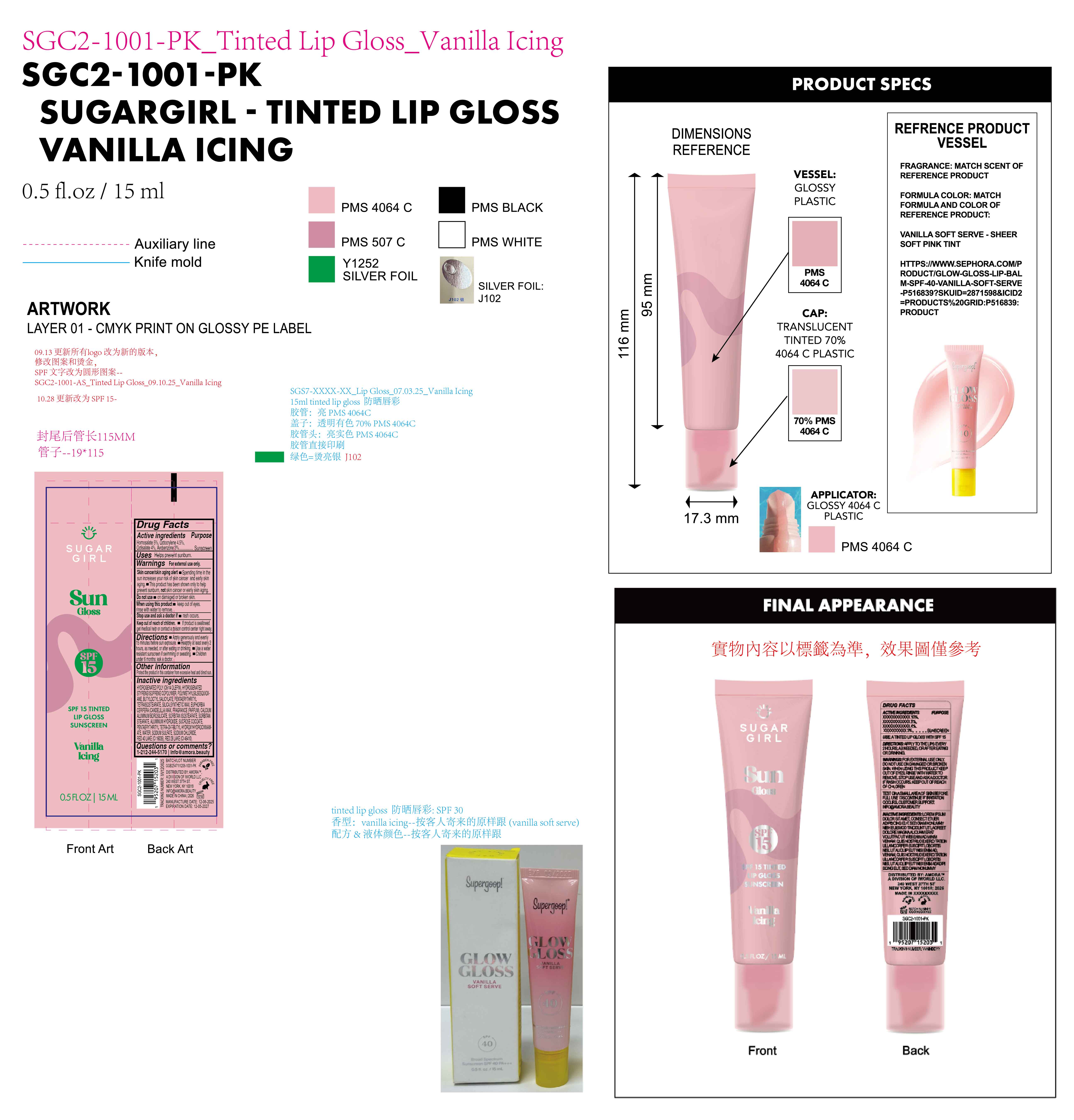 Sugargirl sun gloss SPF15 tinted lip gloss Sunscreen Vanilla Icing by is a Otc medication manufactured, distributed, or labeled by Longway Technology(Guangzhou)Co.,Ltd.. Drug facts, warnings, and ingredients follow.