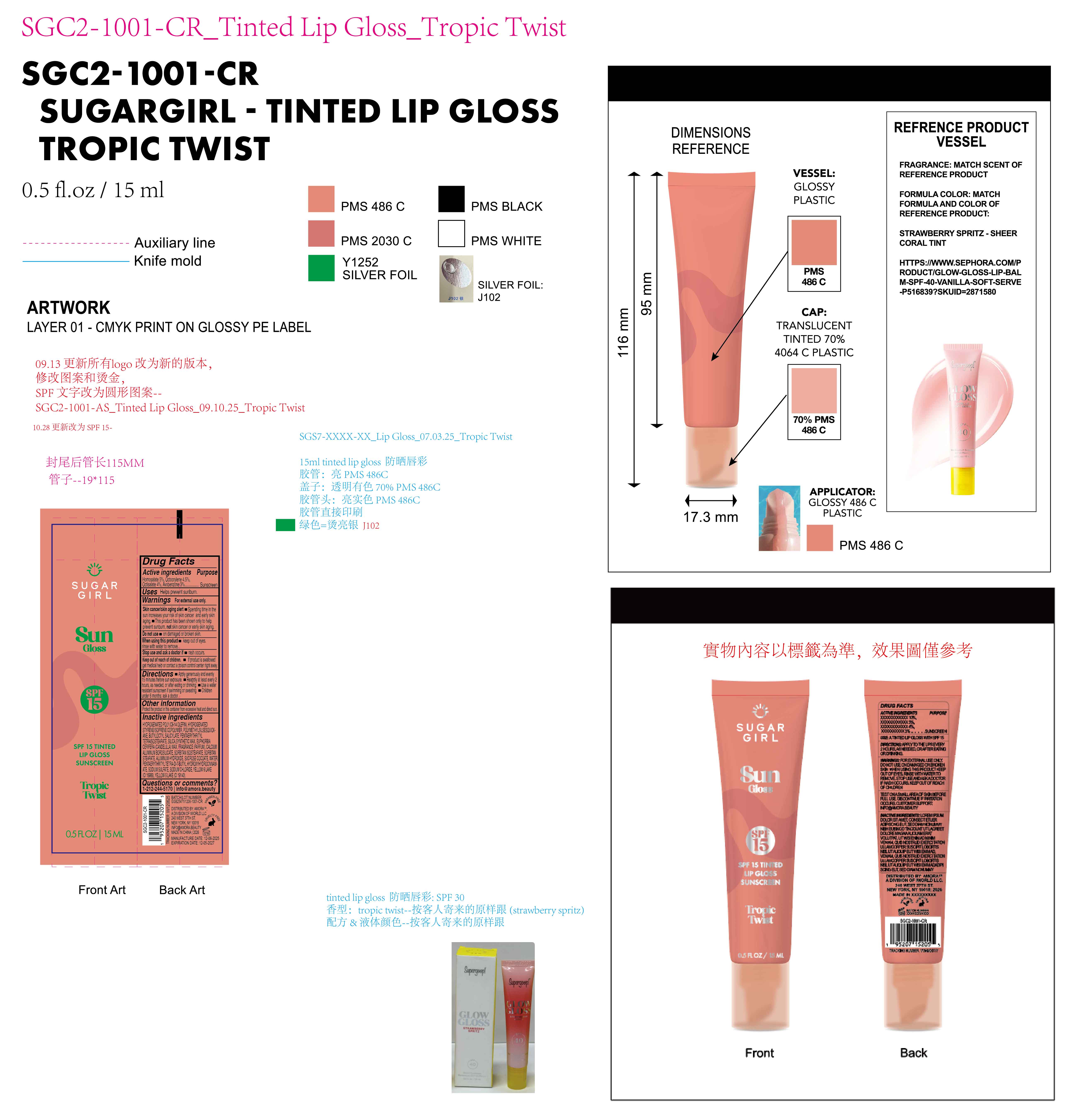 Sugargirl sun gloss SPF15 tinted lip gloss Sunscreen Tropic Twist by is a Otc medication manufactured, distributed, or labeled by Longway Technology(Guangzhou)Co.,Ltd.. Drug facts, warnings, and ingredients follow.